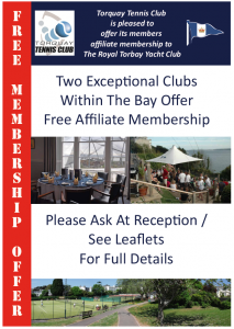 As some of you may be aware, we have joined resources for the benefit of our members with Torquay Lawn Tennis Club. Details can be found here.